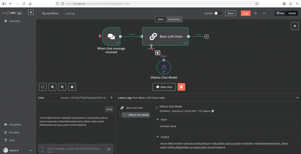- Testaa yhteys Run-painikkeella: n8n hakee viimeisimmän isssuejen lokin.