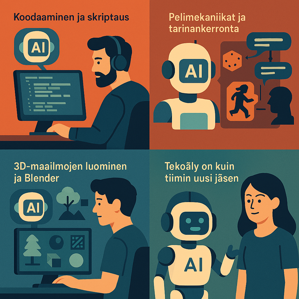 Heipä hei! Paavo Pelintekijä tässä. Meidän tiimi tosiaan käyttää nykyisin paljon tekoäly työkaluja avuksi pelien teossa.